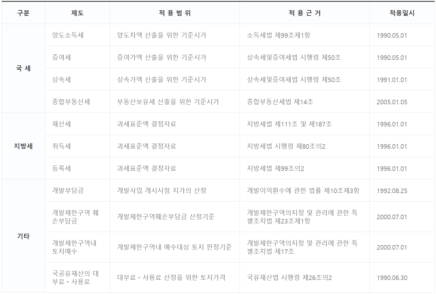 토지관련 국세 및 지방세의 부과기준으로 활용되거나 개발부담금 등 각종 부담금의 부과기준으로 쓰입니다.