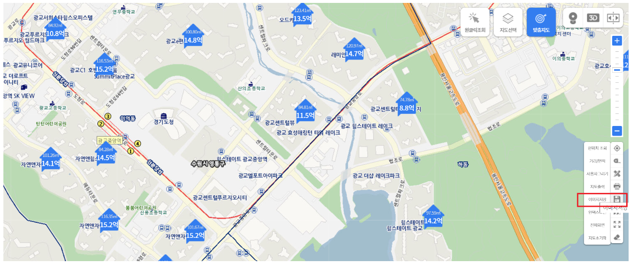 원하는 지도 유형을 선택하여 이미지 저장도 가능합니다.