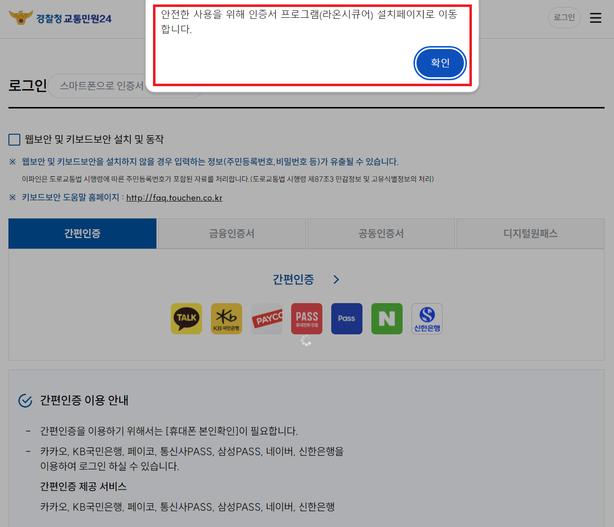 인증서 프로그램 설치페이지로 이동하여 설치합니다.