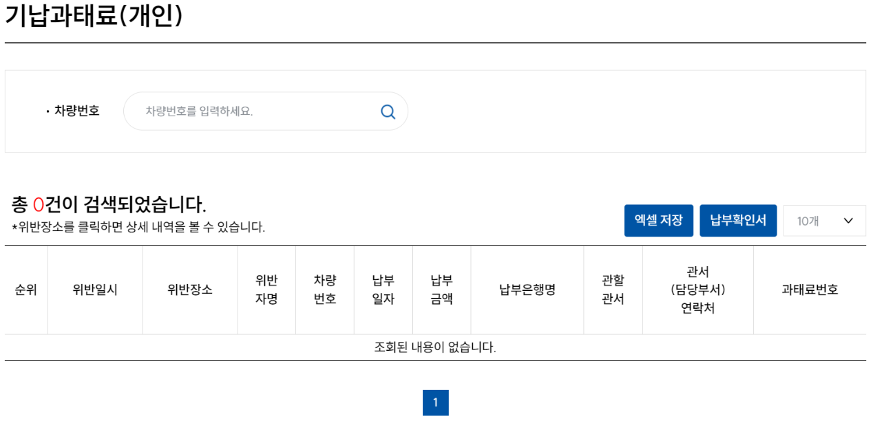 메뉴의 기납과태료를 클릭하면 이미 납부한 범칙금과 과태료 내역을 확인할 수 있습니다.