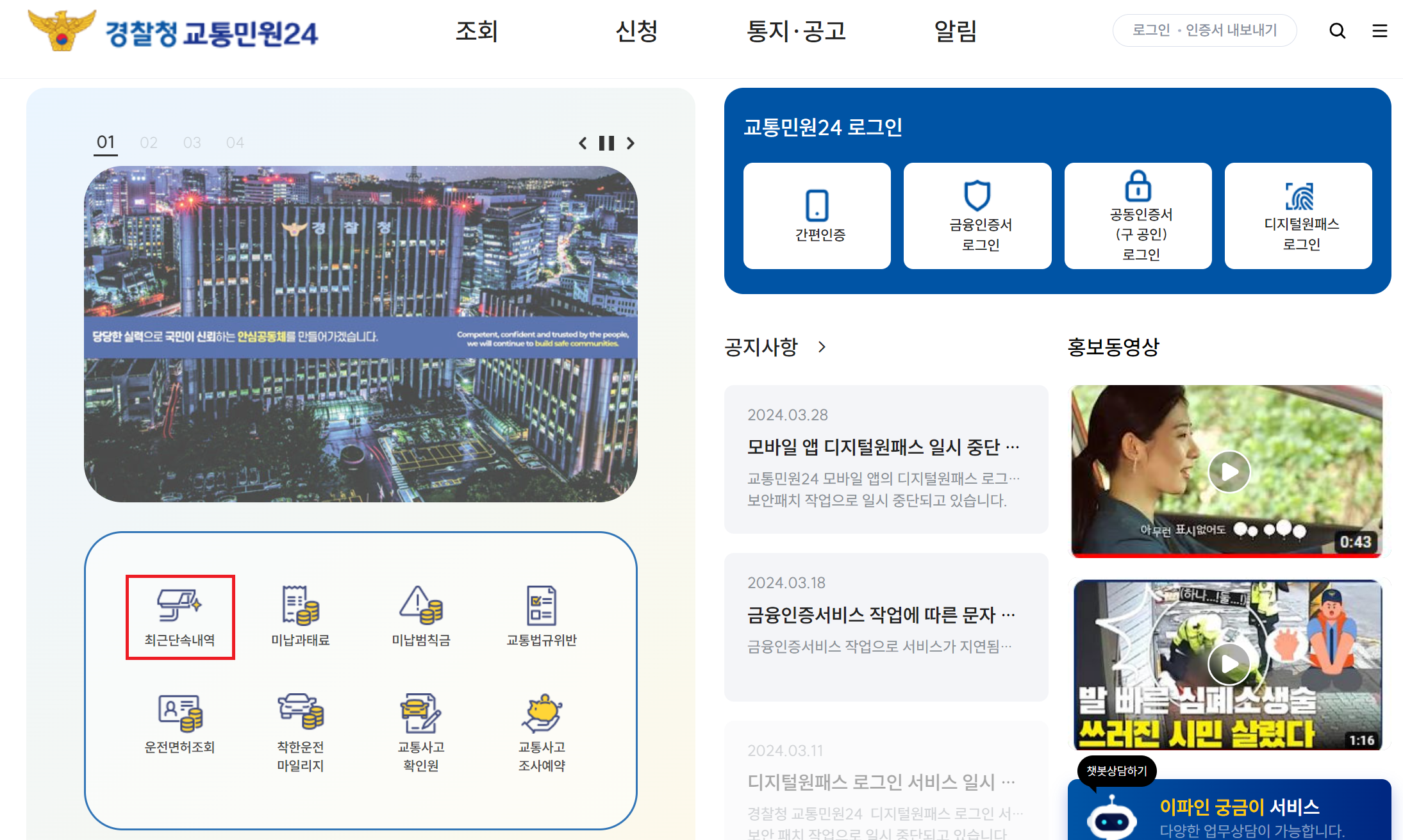아래를 누르셔서 경찰청 교통민원24 사이트로 이동하겠습니다.