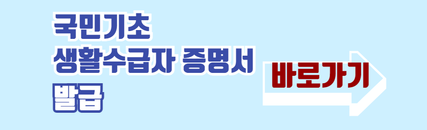 국민기초생활수급자 증명서를 온라인으로 발급받는 방법은 정부24에서 확인할 수 있고, 오프라인으로는 행정복지센터(주민센터)와 무인발급기에서 발급 가능합니다. 아래 버튼을 누르면 정부24로 이동됩니다. 정부24 접속 > 검색창에 '기초생활수급자증명서' 검색