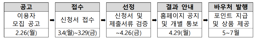 사용기간은 24년 5월 1일 (수) ~ 7월 31일 (수) 15시까지 3개월간 사용할 수 있습니다. 선정결과 발표2024년 4월 29일 (월)에 홈페이지 및 신청자 개별 통보 예정입니다.