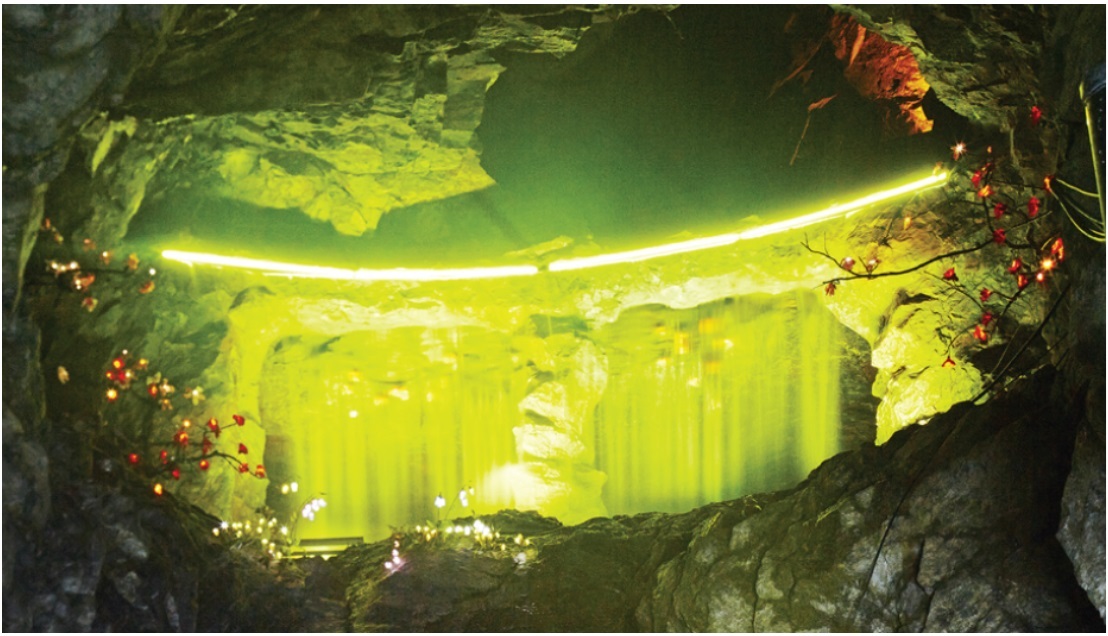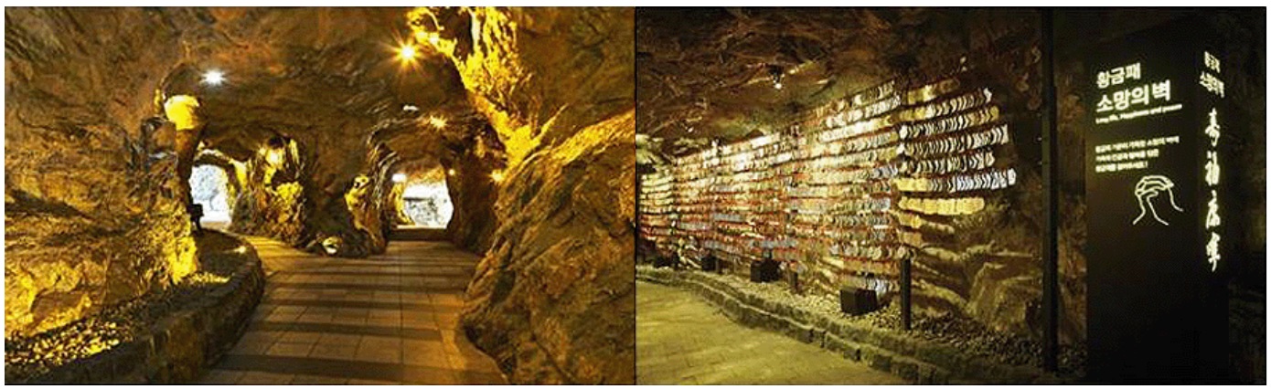 동굴 아쿠아월드에서는 토종물고기 외 외래종도 만나볼 수 있습니다. 지하암반수가 풍부하여 이것을 활용해 아쿠아월드, 황금폭포, 동굴 식물원에 물을 공급합니다. 금/은/동을 채굴하던 곳이여서 황금광산의 길을 걸어보며 황금패를 걸어두는 체험을 할 수 있습니다.