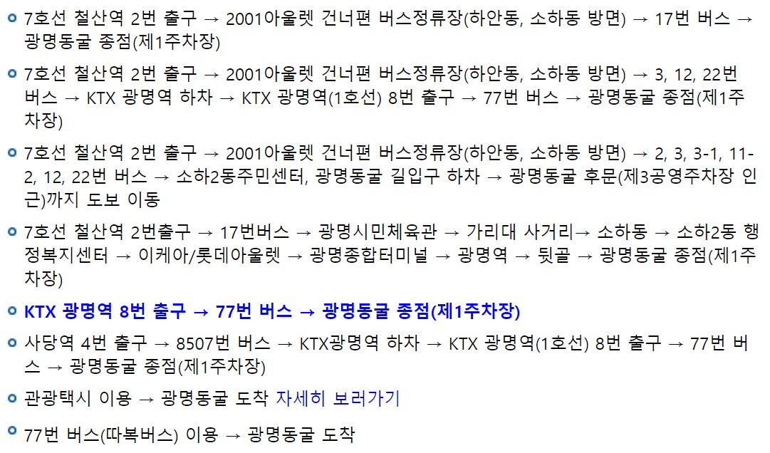 광명동굴 오시는길