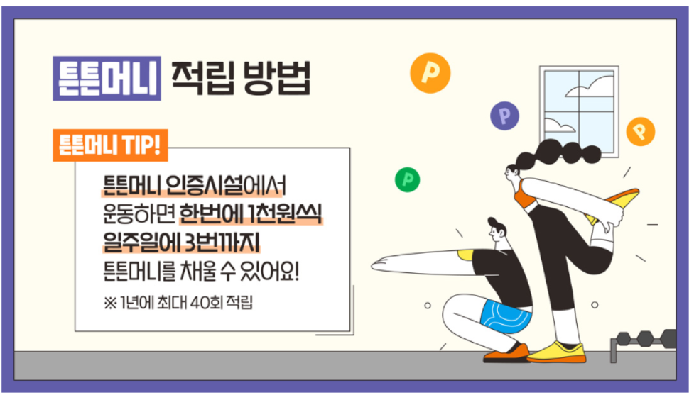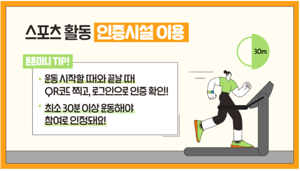 스포츠활동 인센티브 튼튼머니란 스포츠활동에 참여 인증하면 튼튼머니를 적립하여 스포츠용품 구매와 스포츠시설 등록, 약국과 병원에서 사용할 수 있는 스포츠 복지 서비스를 말합니다.