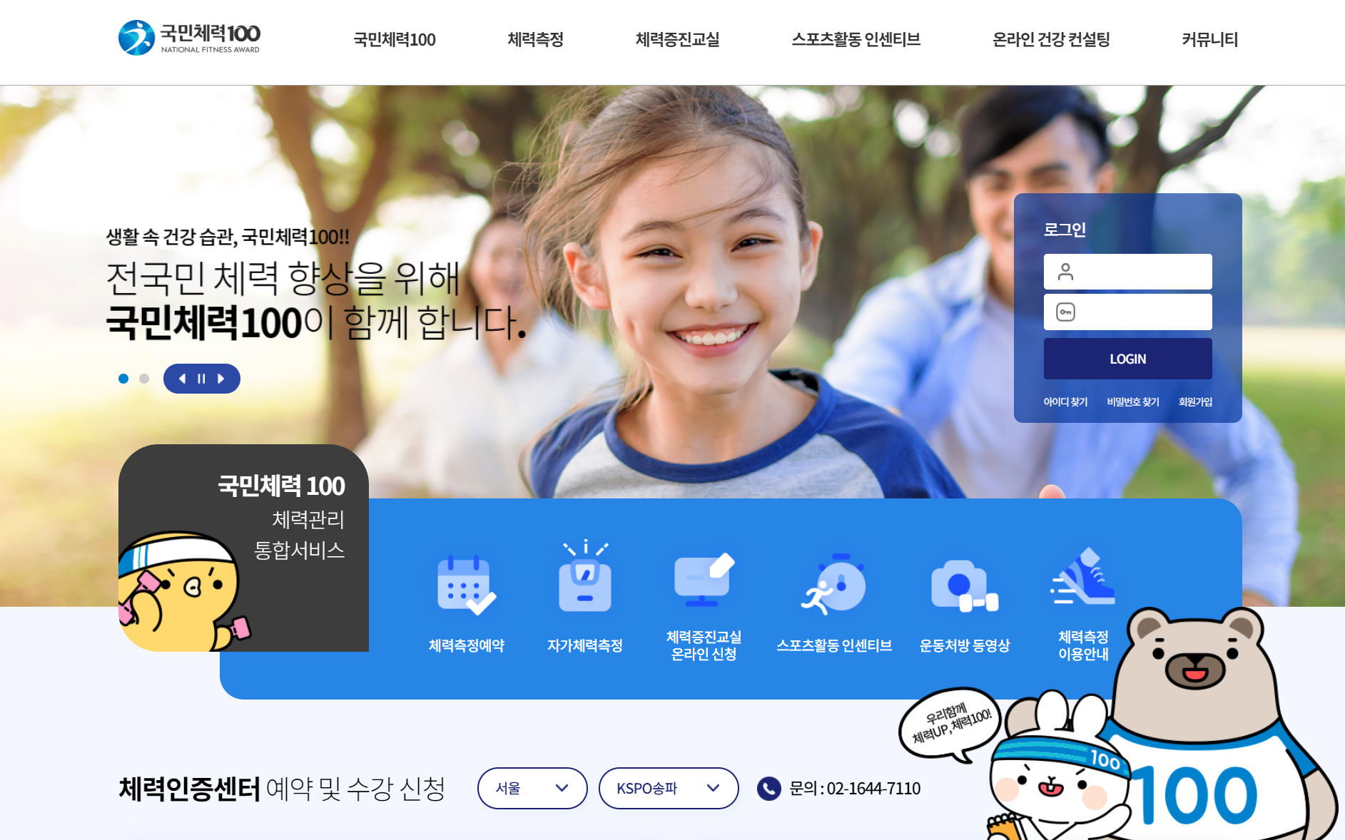 국민체력100 체력인증센터 홈페이지 ( nfa.kspo.or.kr )