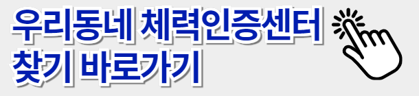 우리동네 체력인증센터 위치가 어디있는지 찾고 싶다면 위의 버튼을 통해 확인해보세요.