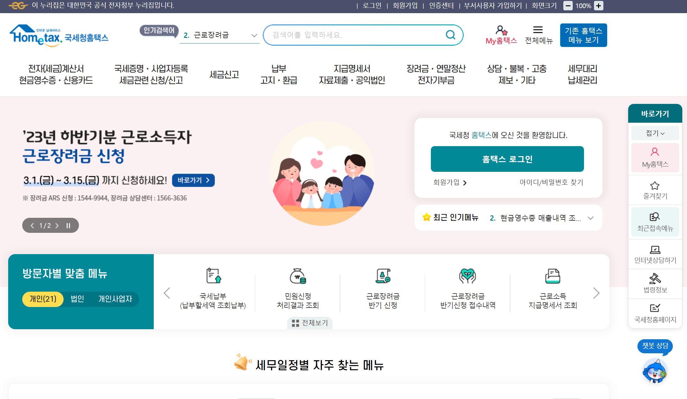 홈택스(PC)와 손택스(모바일)에서 발급받을 수 있는데 아래는 PC버전으로 보여 드리겠습니다.