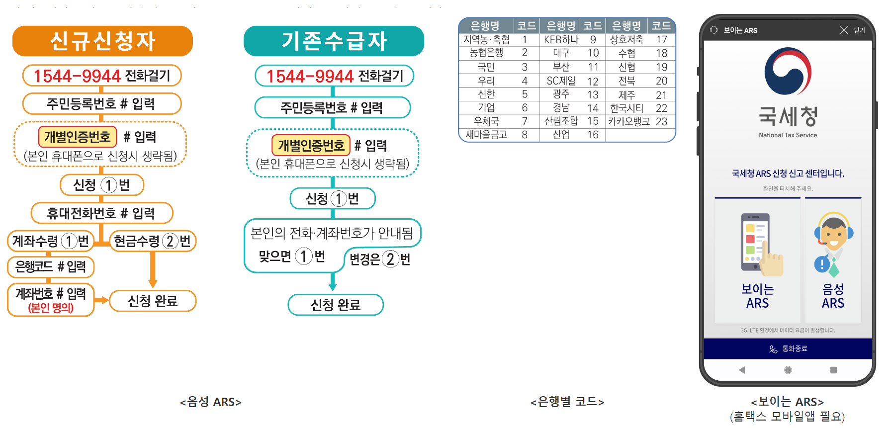 전화방법 외에 홈택스 모바일 앱 또는 홈택스 홈페이지에서 신청할 수 있습니다.