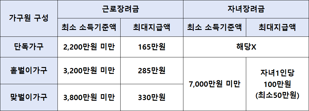 바로 근로장려금과 자녀장려금 소득요건에 대해 설명드리겠습니다.