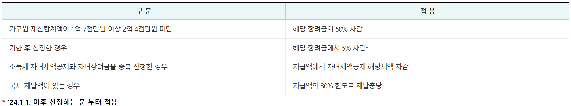 자격조건이 된다고 무조건 최대금액을 지급하지 않습니다. 1.7억원~2.4억원 이내라면 총 지원금의 50% 차감됩니다. 신청 기한을 놓친다면 10%가 감액됩니다.