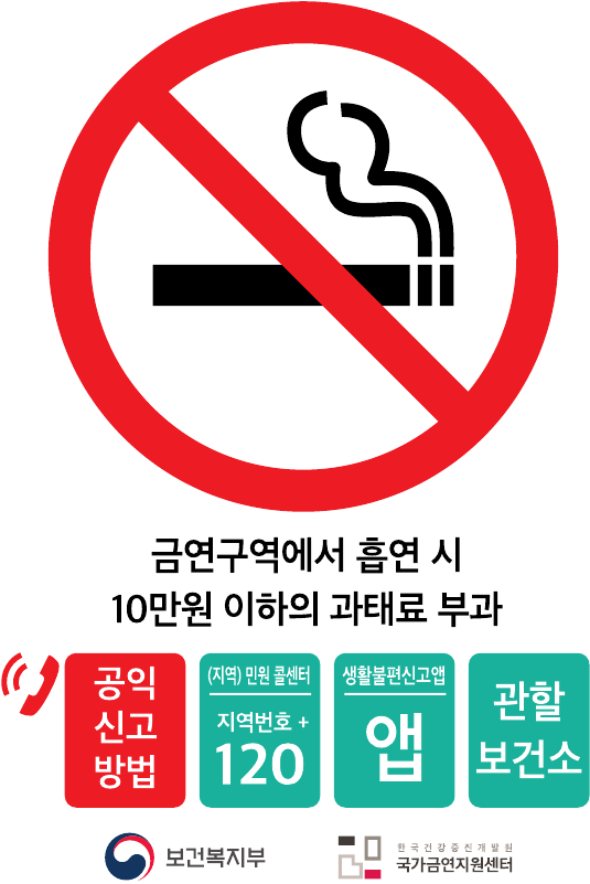 우리나라 성인 남성 흡연율이 OECD 가입국 중 최고 수준입니다. 일반적으로 음식점 등 실내 공중이용시설은 금연구역이 대부분인데 정확하게 어딘지를 알기 어려워하는 분들이 많습니다.