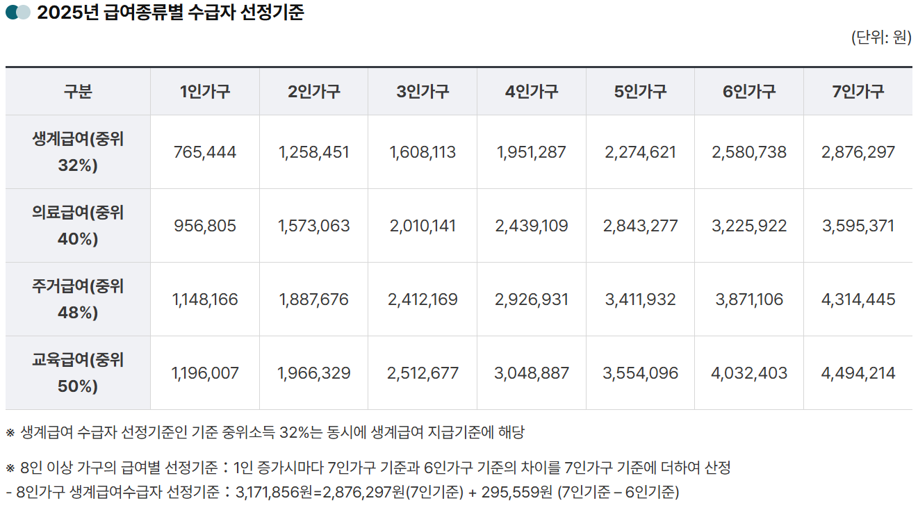중위소득 100%, 기준 중위소득, 2025년 기준 중위소득