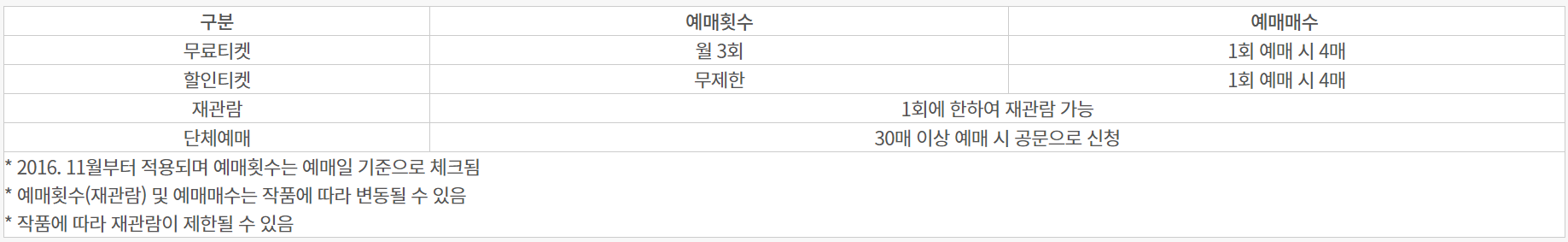 3. 나눔티켓은 비지정 좌석으로 예매가 진행되고 관람 당일 매표소에서 좌석이 지정됩니다.