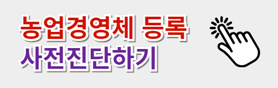 아래 버튼을 누르면 농업 경영체 등록 사전진단 페이지가 나옵니다. 만약 진단 결과 등록요건 충족에 해당되더라도 실제 진행과정에서 등록이 불가한 경우가 발생할 수 있으니 참고해주세요.