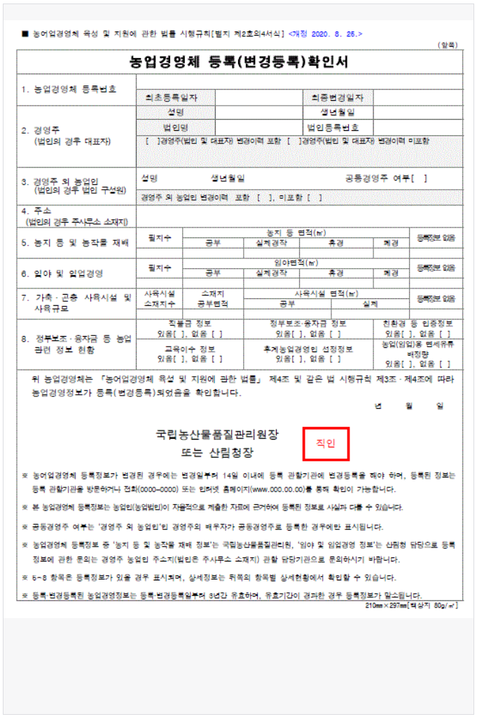 농업경영체 등록 확인서 발급