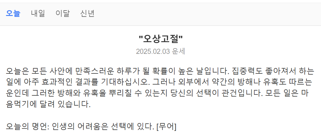 2025년이 벌써 한달이 지나갔습니다. 오늘은 많은 분들이 새해에 계획을 세우면서 가장 궁금해 하는 무료운세 보기, 무료 사주풀이에 대해 알아보겠습니다. 무료로 다음 사이트에서 쉽게 볼 수 있기 때문에 나의 운세와 사주풀이를 간편하게 분석할 수 있습니다.