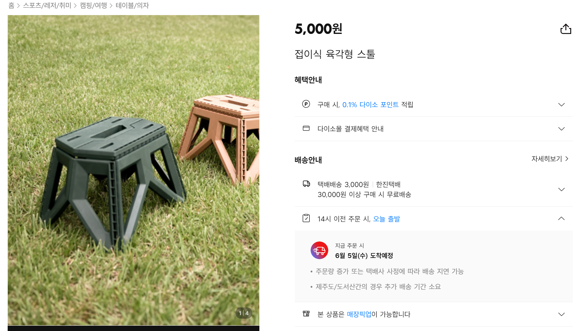 '접이식 육각형 스툴'이라는 제품명을 알아둡니다.