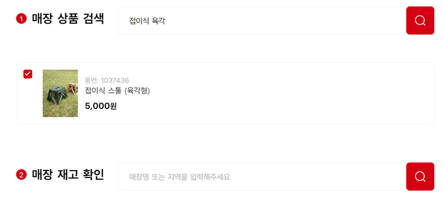 4. 매장 재고 확인 검색란에 방문할 매장을 입력하고 검색합니다.