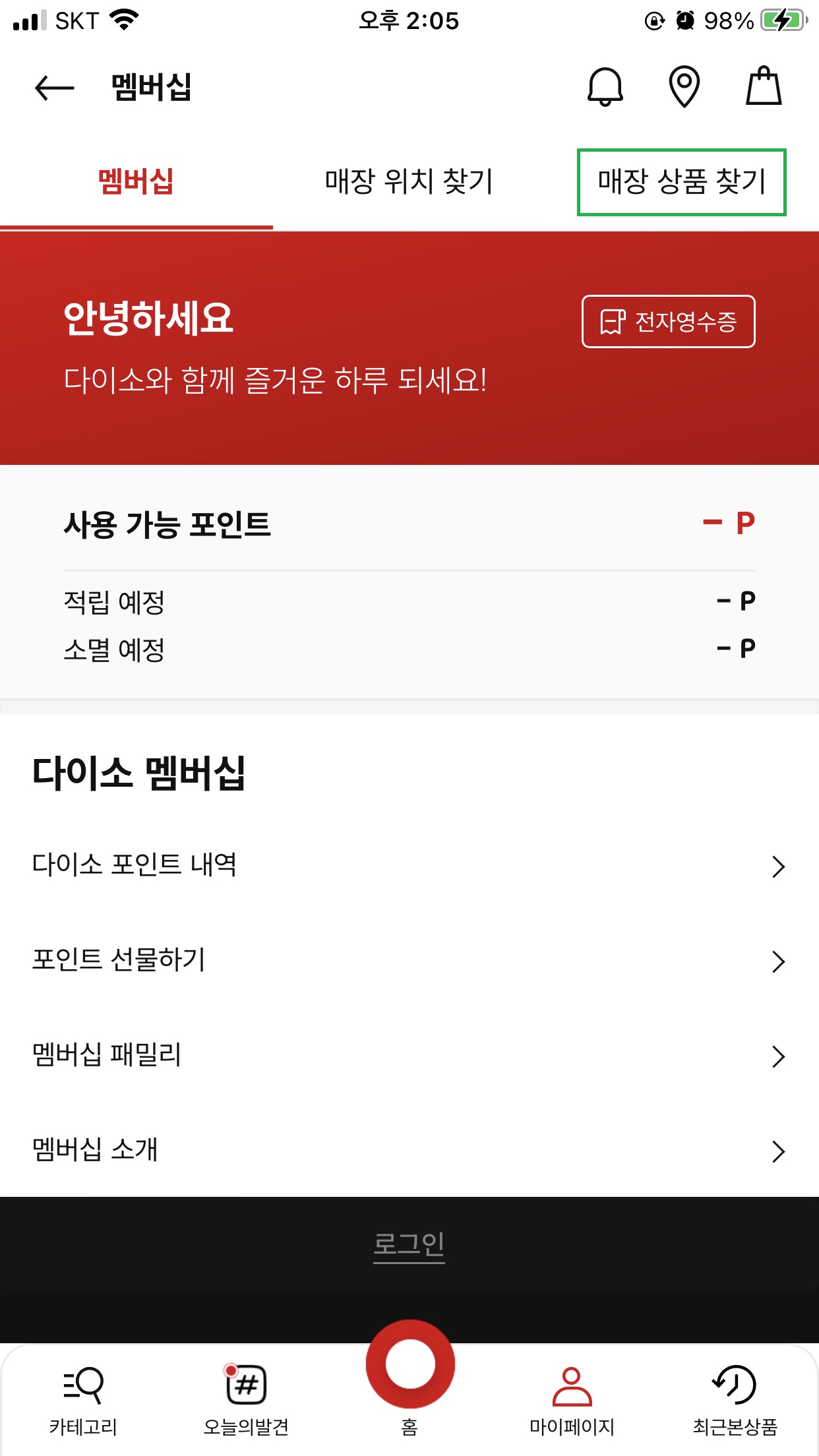 2. 매장 상품 찾기 버튼을 클릭합니다.