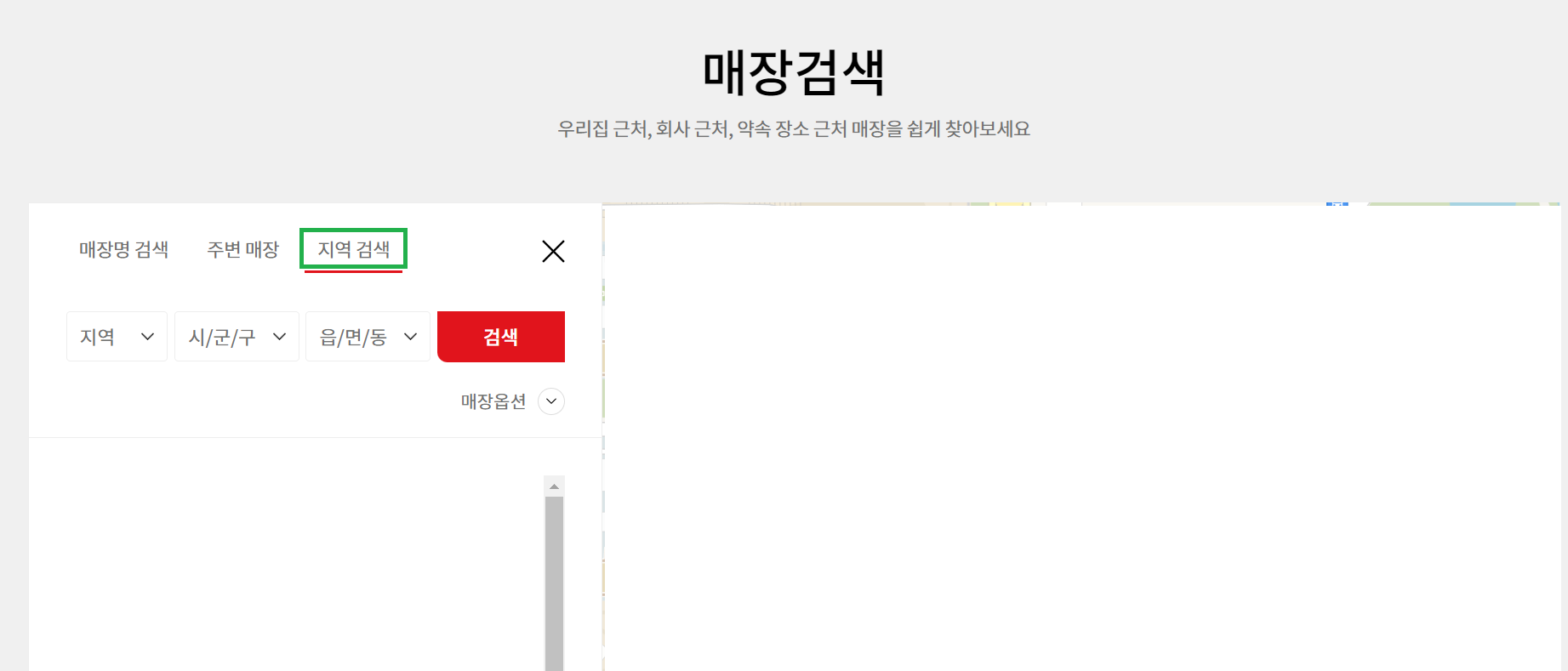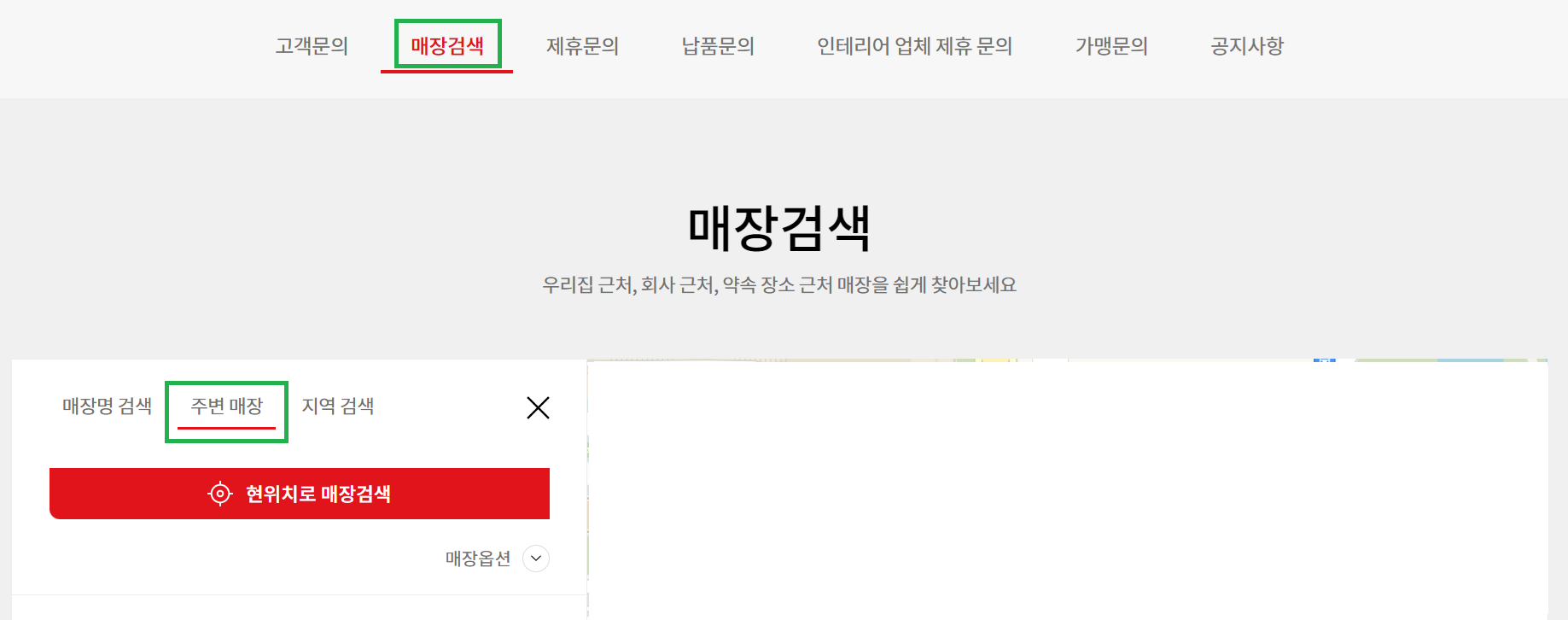 주변 매장 또는 지역을 검색하여 확인할 수 습니다.