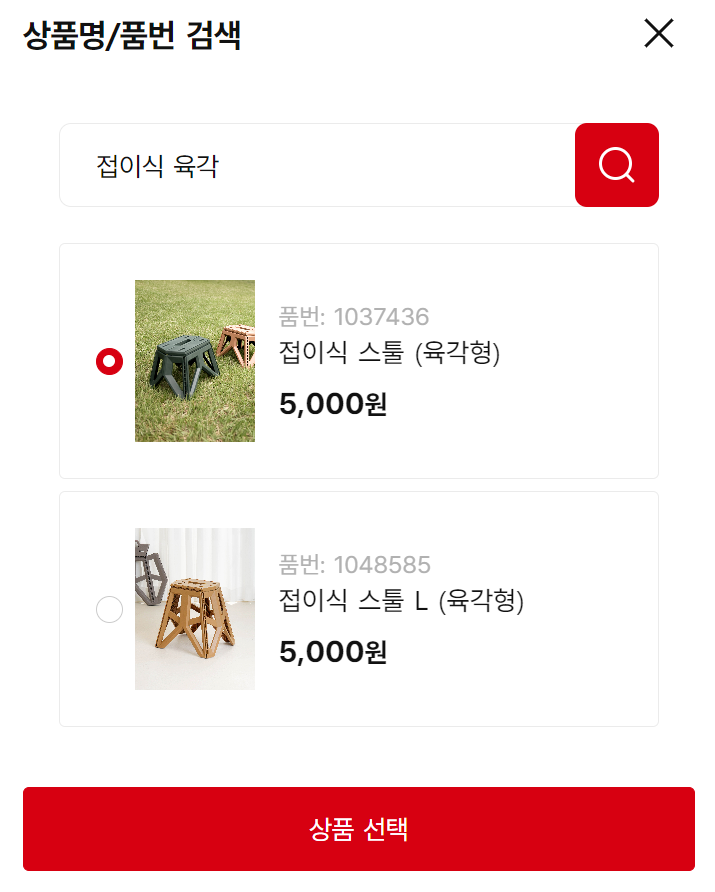 접이식 육각이라고 검색하면 나오는데 여기서 상품 선택 버튼을 클릭합니다.