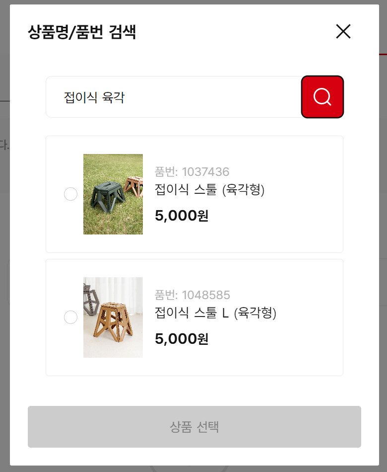 3. 상품의 이름이나 번호를 입력하여 검색합니다.