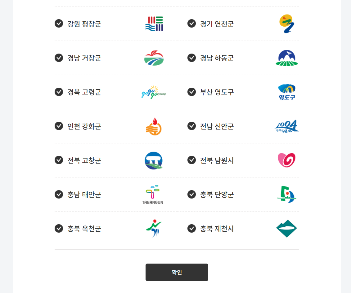 해당 페이지에 접속하면 조회할 지역을 선택하여 지역별로 혜택 확인이 가능합니다.