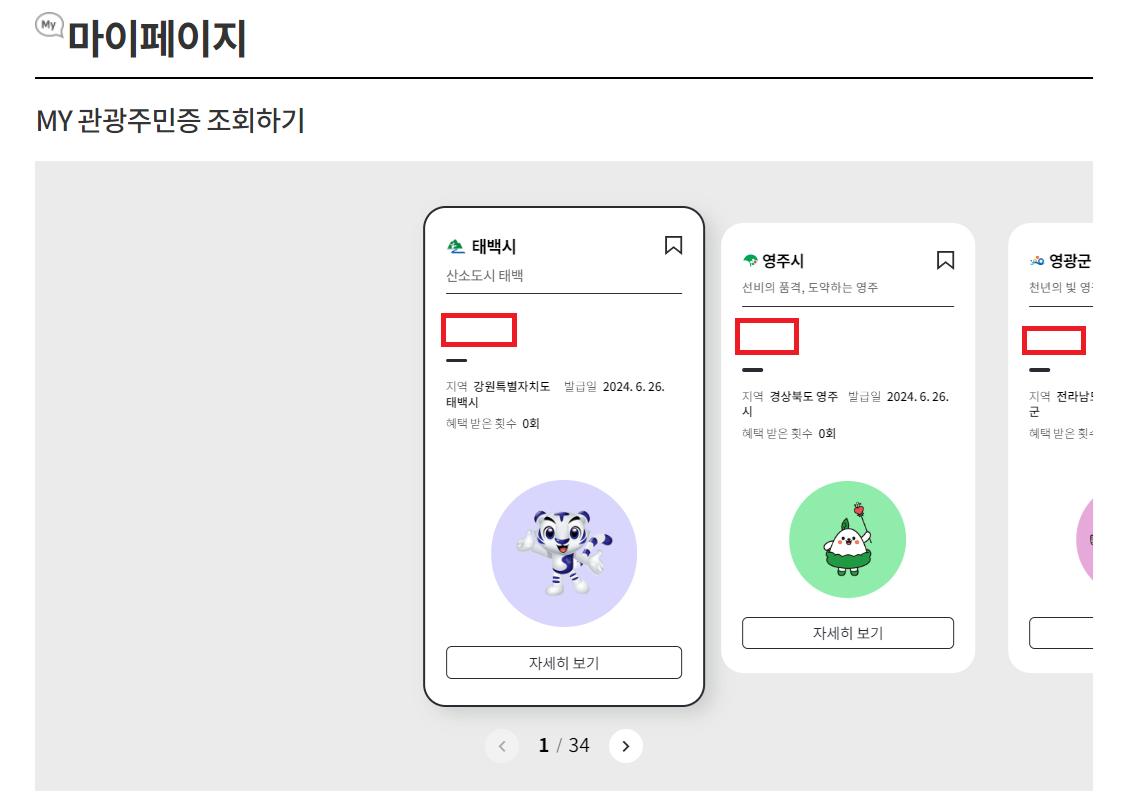 디지털 관광주민증 발급 조회하기