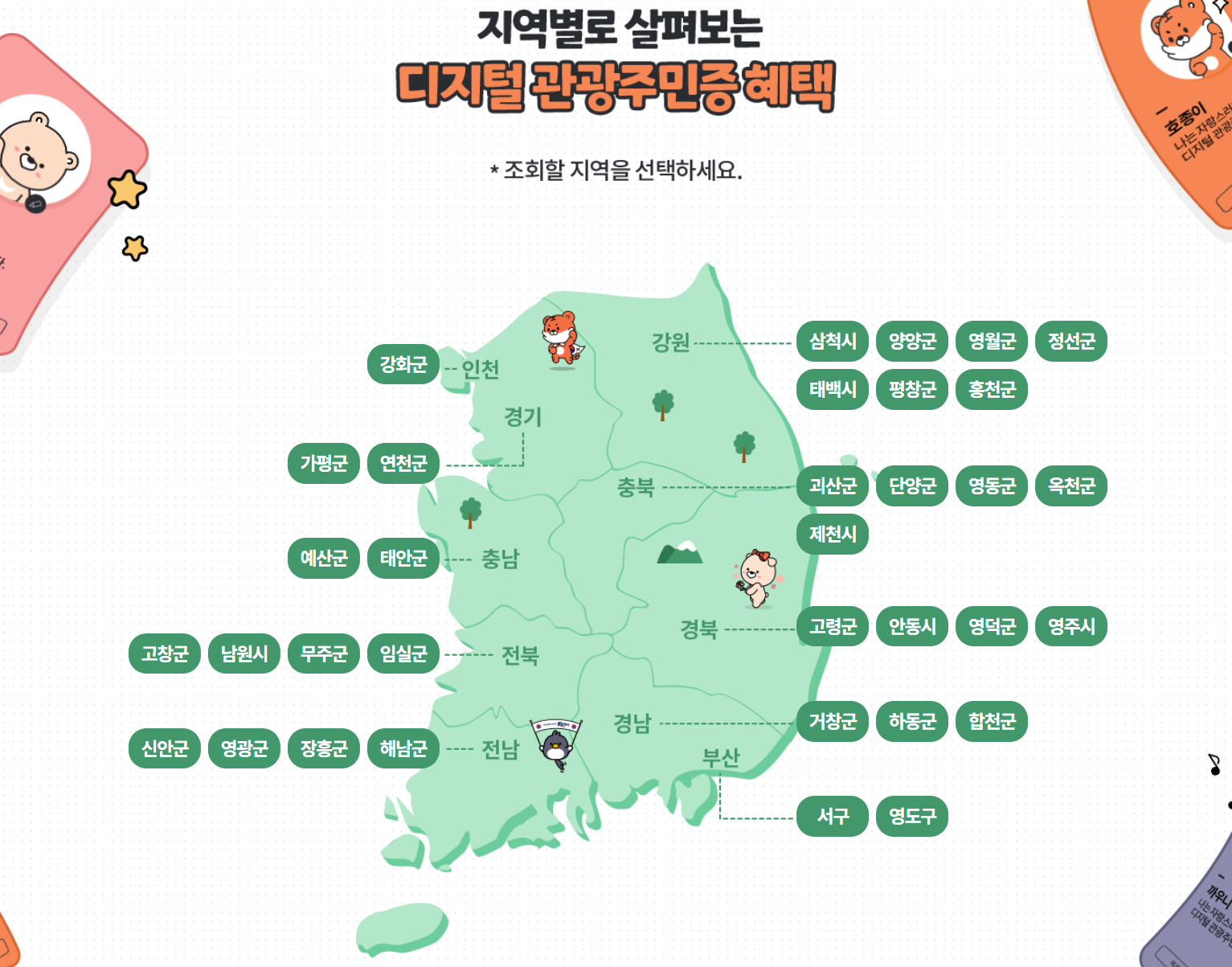지역별로 살펴보는 디지털 관광주민증 혜택을 보시려면 아래를 눌러주세요.