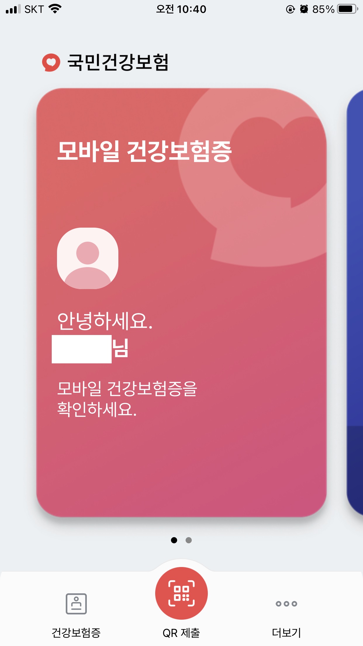4. 모바일 건강보험증 조회 또는 건강보험자격본인확인 QR을 요양기관 접수처에 제시합니다.