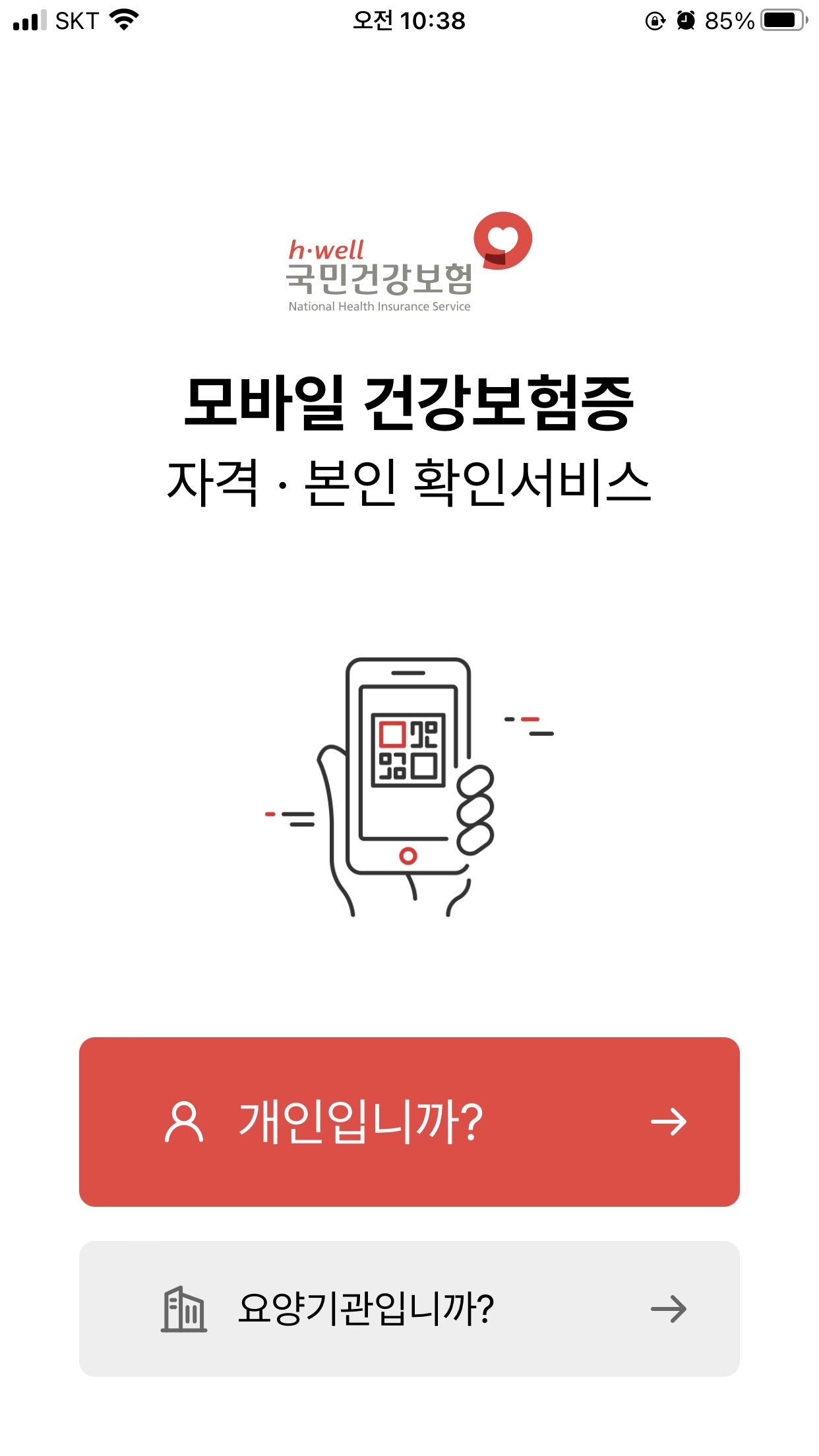 4. 모바일 건강보험증 조회 또는 건강보험자격본인확인 QR을 요양기관 접수처에 제시합니다.