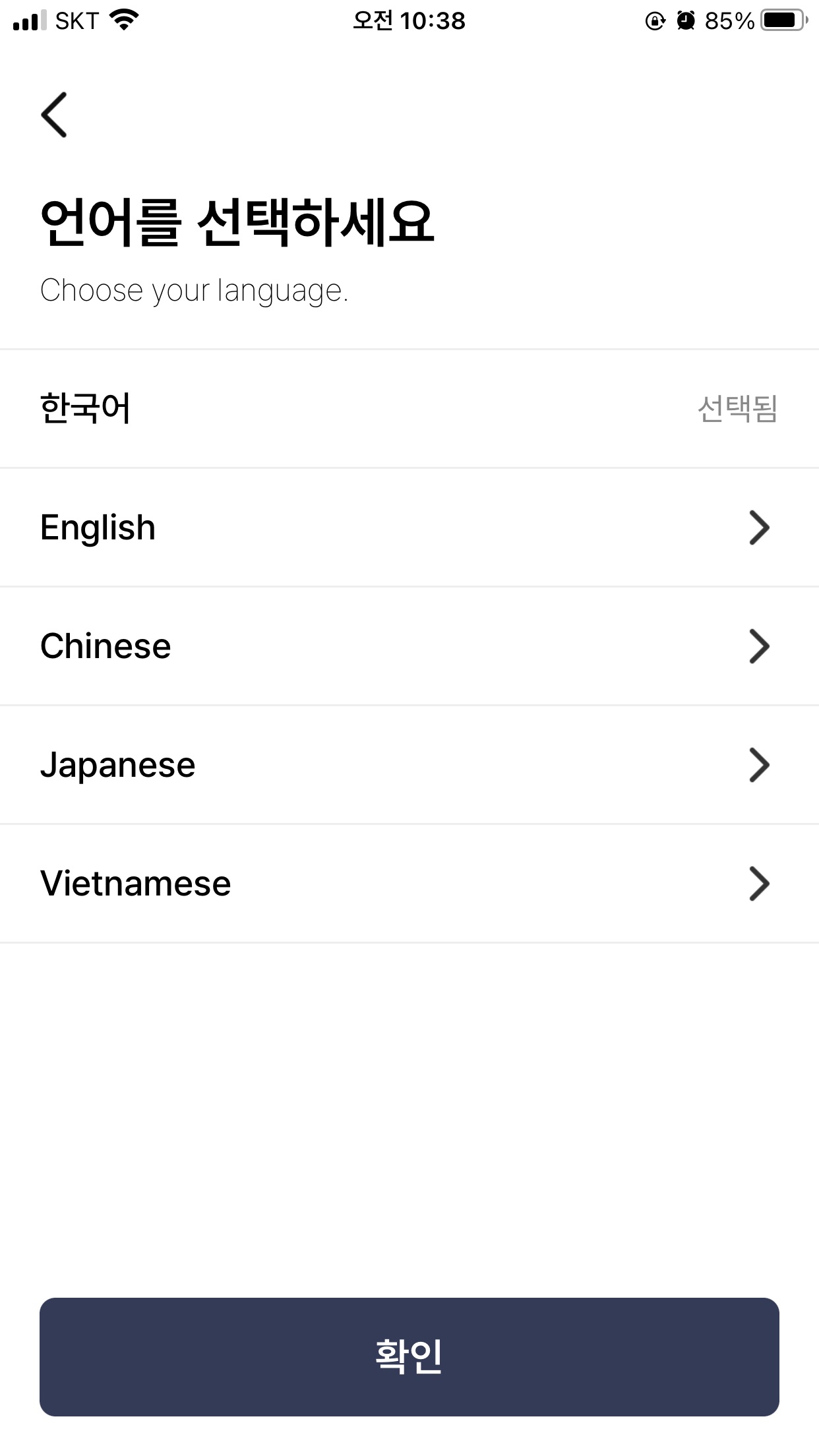 한국어가 자동선택 되어 있어서 확인을 누르고 '본인확인 하기'를 누르셔서 본인명의의 핸드폰으로 인증합니다.