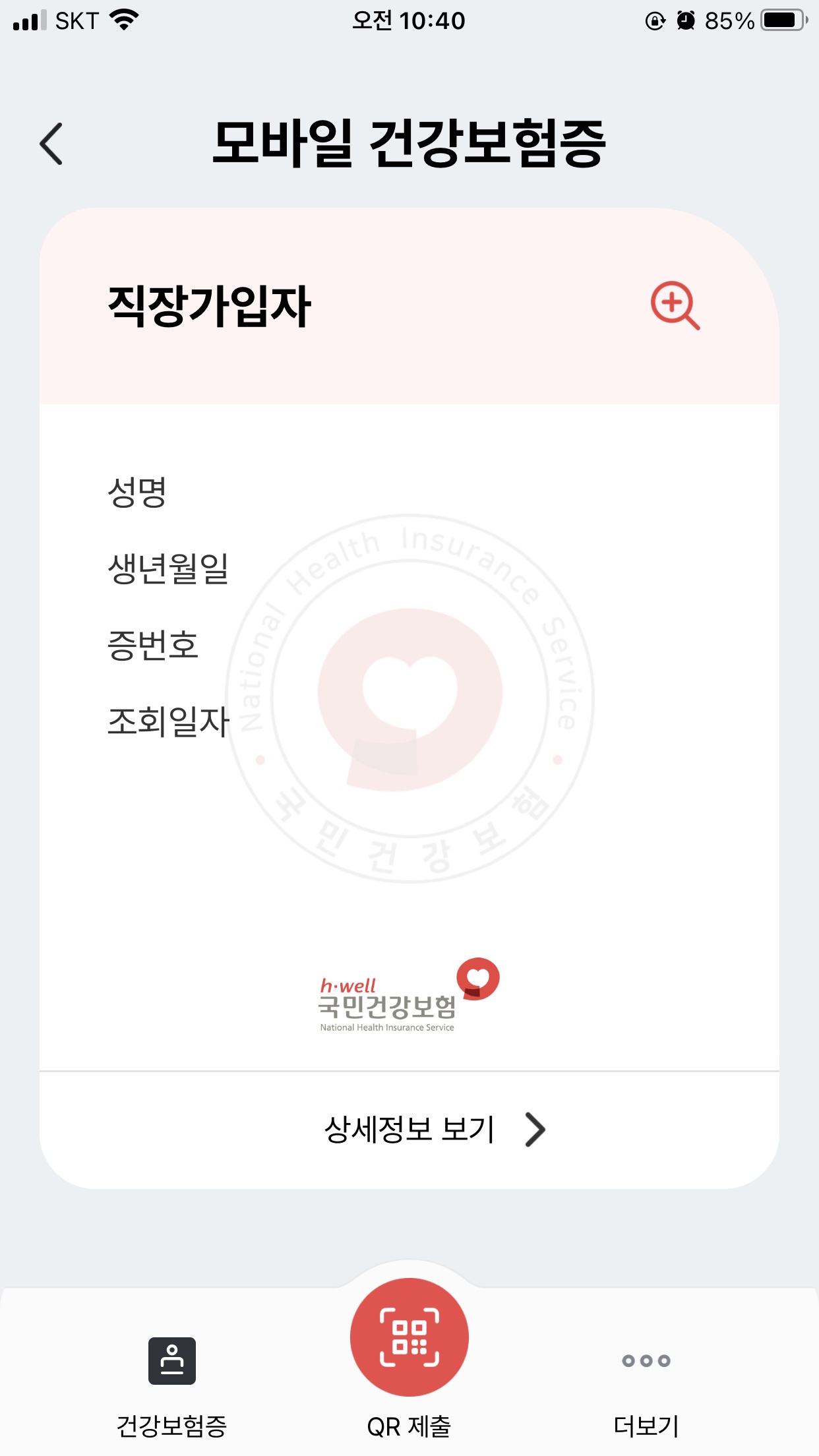신분증을 깜빡하고 미지참했을 때는 '모바일 건강보험증' 앱을 설치하셔서 제시하면 진료가 가능합니다. 위 버튼을 누르면 구글플레이스토어 앱을 설치할 수 있습니다.
