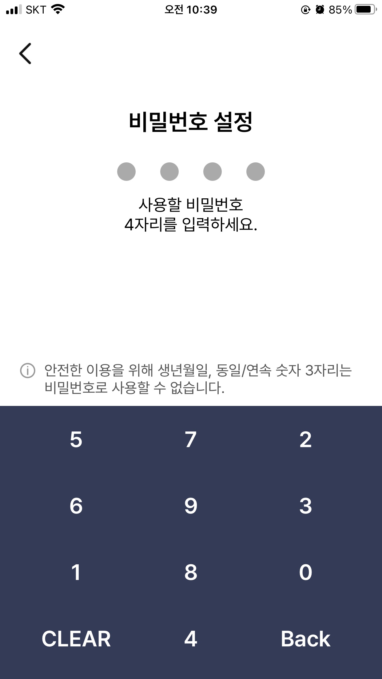 3. 비밀번호 설정 또는 생체인증 정보 등록합니다.