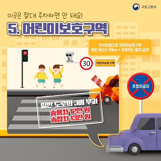 4. 노란색 이중선 : 주정차 절대 금지
