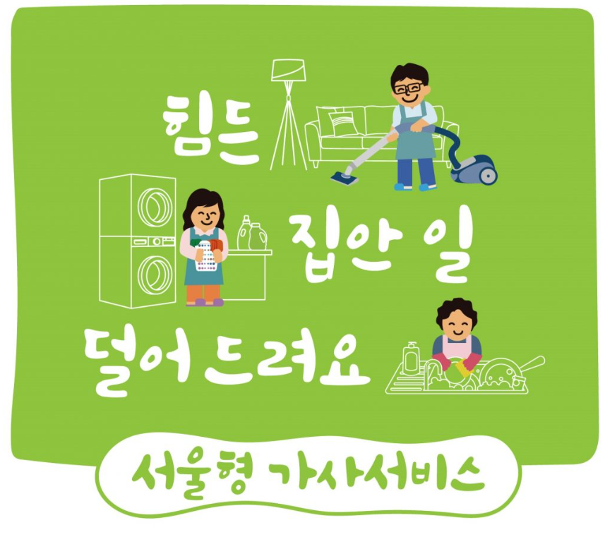 서울시는 아이키우기 좋은 환경을 만들고자 '탄생응원 서울 프로젝트'를 진행하고 있습니다. 아이 낳기 좋은 서울을 만들기 위한 '탄생응원'과 아이 키우기 좋은 서울을 만들기 위한 '육아응원', 총 2개 분야로 구성되어 있으며 이 중에서 서울형 가사서비스 지원은 '육아 응원'에 속합니다.