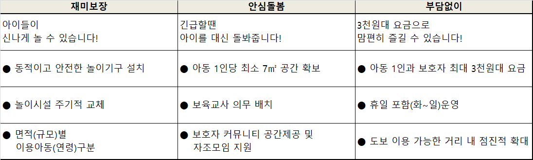 - 이용료 : 유아 : 2,000원 / 보호자 : 1,000원 (현재는 시범운영 기간으로 무료 이용 중)