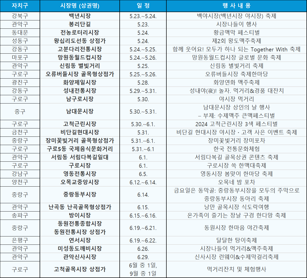 전통시장(골목상권) 5~6월 야간·먹거리 행사 일정