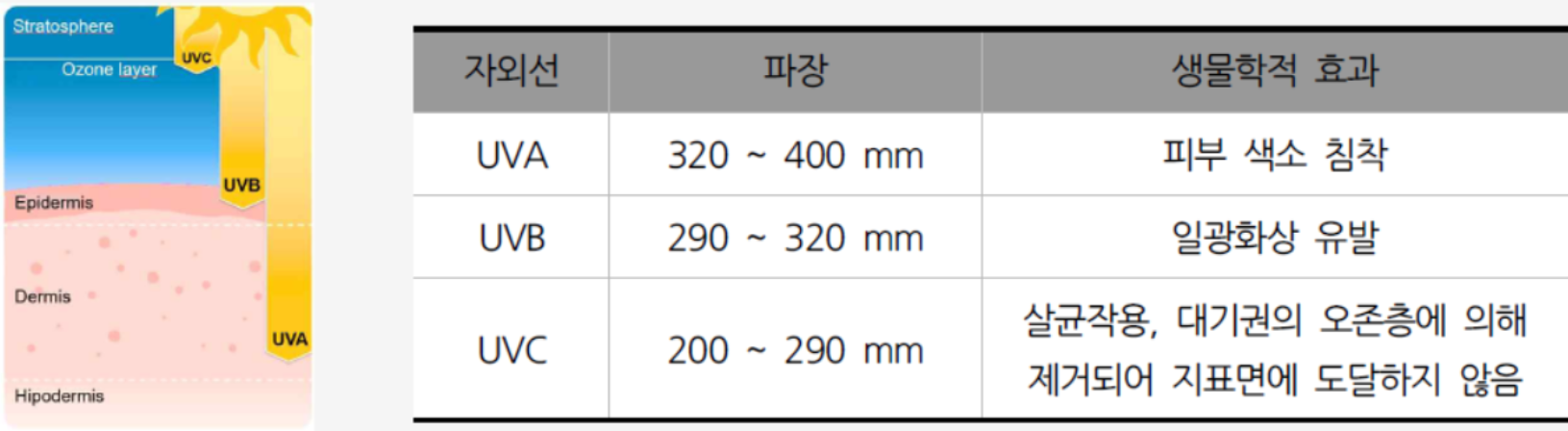 자외선은 UVA, UVB, UVC로 파장에 따라 나뉩니다.