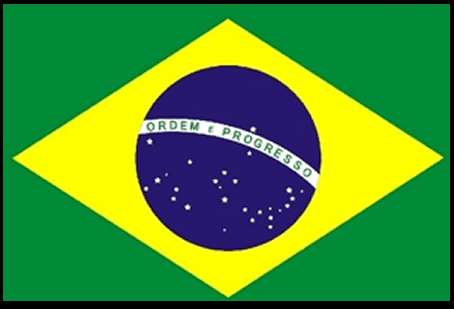 - 브라질 : 녹색 바탕에 노란색 다이아몬드, 그리고 푸른 원과 별들이 있으며, 질서와 발전을 뜻합니다.