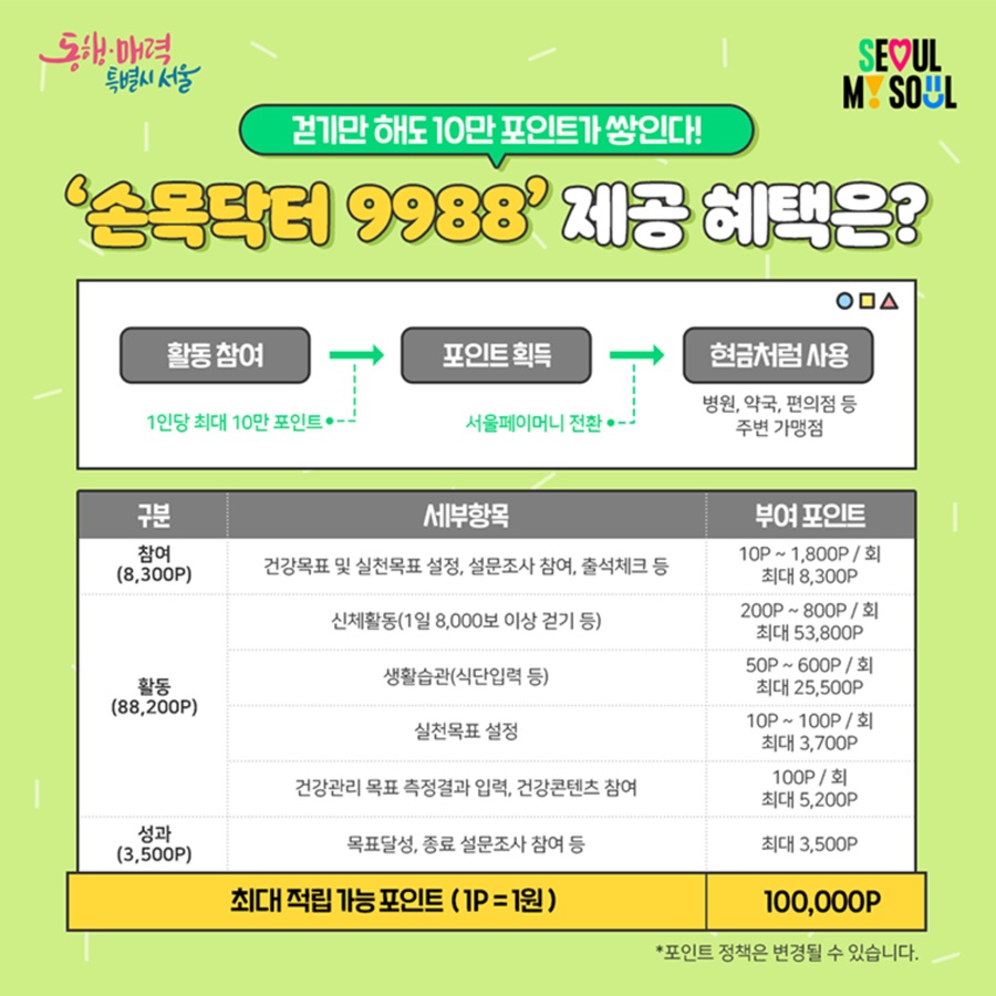 서울시에서 건강한 생활 습관 형성과 건강 증진을 위해 2021년부터 진행해온 손목닥터9988을 아시나요. 뚜벅이라면 주목해주세요.