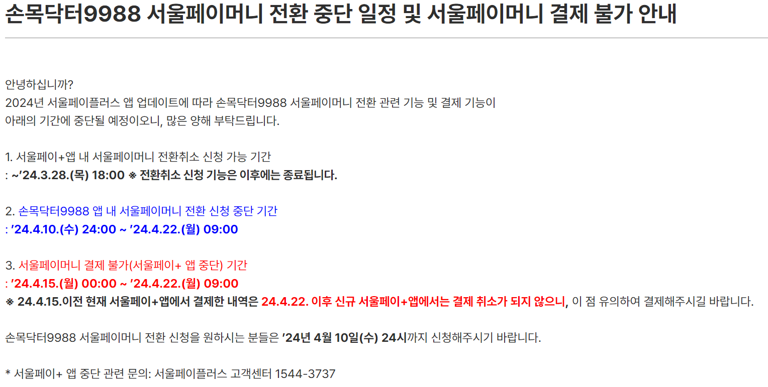 4월 중에 서울페이+ 앱 업데이트 때문에 서울페이머니 전환 신청 중단 기간, 서울페이머니 결제 불가한 기간이 있으니 꼭 확인하세요.