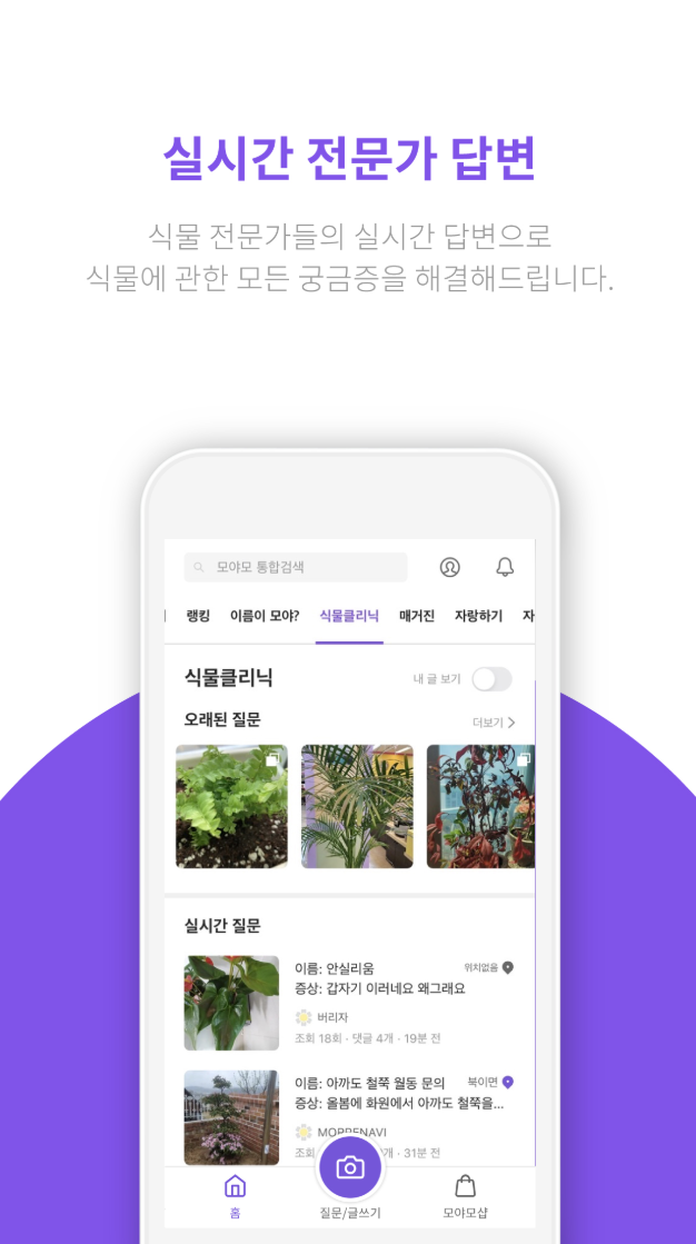 모야모는 식물 전문가들이 답변을 해주기 때문에 신뢰도가 있습니다. 이름뿐만 아니라 식물의 별명, 꽃말, 전설, 약효, 공기정화능력, 키우기 요령 등 식물도감 정보도 볼 수 있습니다.