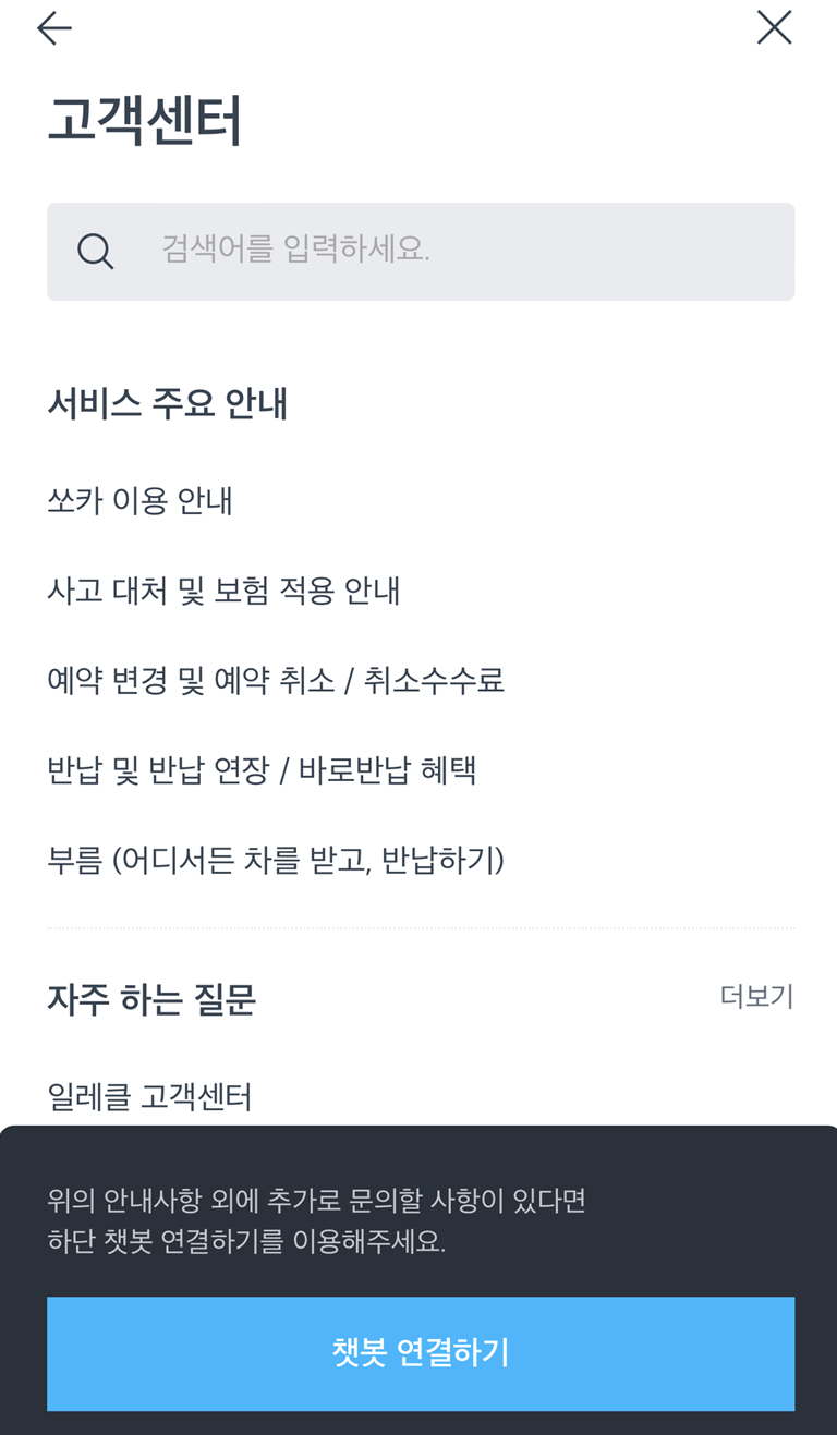 위 번호 외에 쏘카 앱을 통해서도 챗봇 상담이 가능합니다.