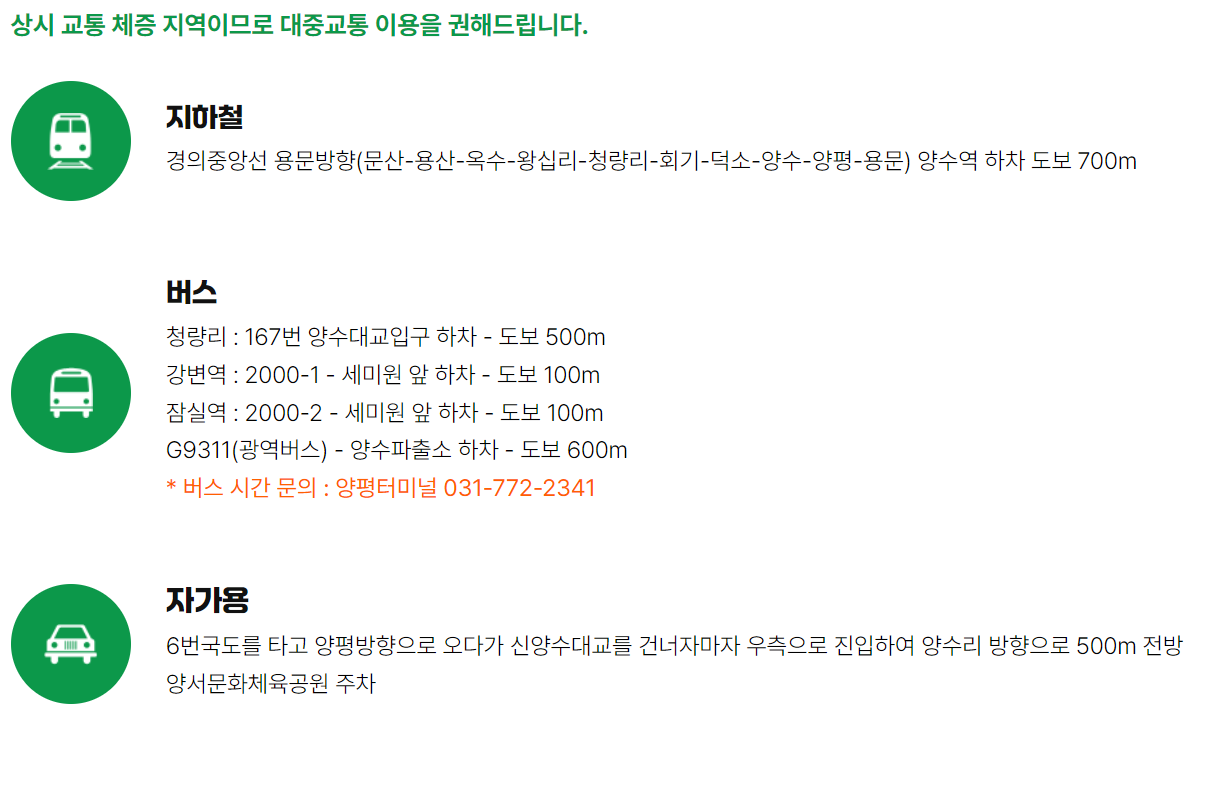 - 주차 : 세미원 옆 양서문화체육공원 주차장과 공영 주차장