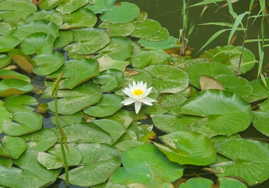 - 수련의 잎이 물위에 드는 잎으로 자람, 물 표면 가까이에 떠서 서식
