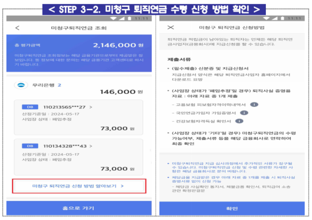 홈페이지 또는 모바일앱으로 미청구 퇴직연금을 확인할 수 있고, 5월 29일부터 접속이 가능하오니 참고바랍니다.