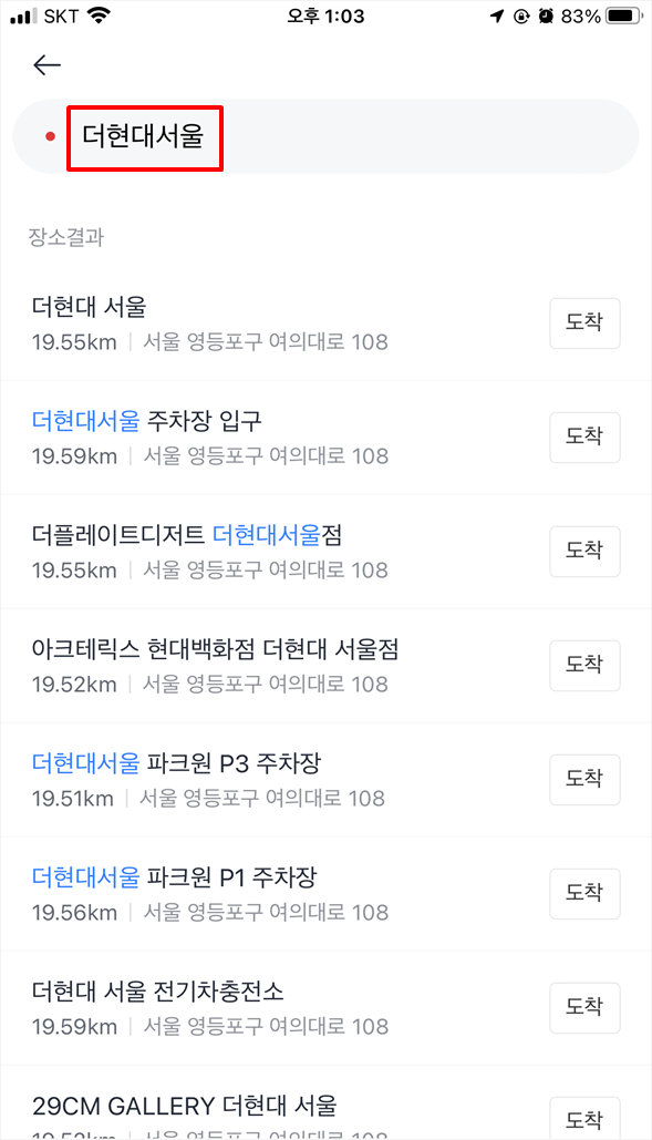 저는 검색란에 '더현대서울'을 기입하고 검색을 눌렀습니다.